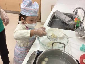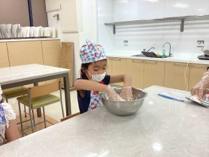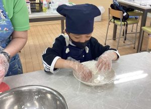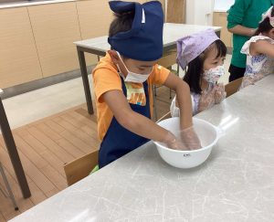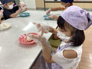 手から伝わる生地のひんやりとした感触が面白く、みんな集中してこねていました。