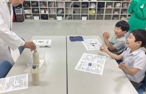 実験の先生の「作りたい人~?」という言葉に児童たちは元気に「はい!」と答えていました