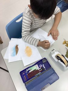 10月のキッズアートは、落ち葉🍁を使って、図鑑を作りました![]()