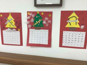 クリスマスにちなんで、クリスマスツリーのカレンダー制作を行いました![]()