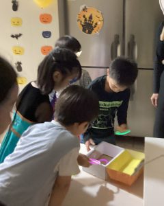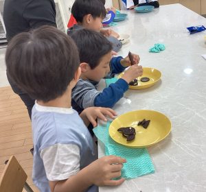 まずは、おやつ作り!オレオクッキーを使ってコウモリの形にしていきます🦇
