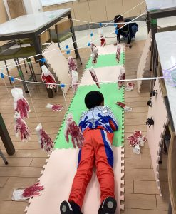 蜘蛛の巣の的に向かって、ミニボールを投げました!高得点を目指します✨