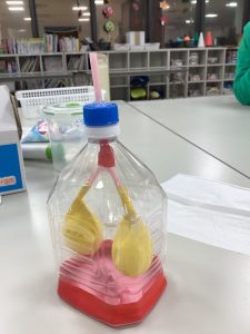 そして先生が持ってきてくれた肺のモデルで肺がどのように膨らみ縮むのか知れました。