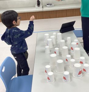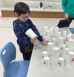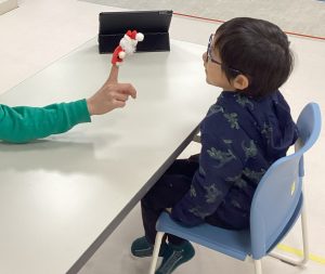 先生にじゃんけんで勝ったらサンタ帽子を開けます。