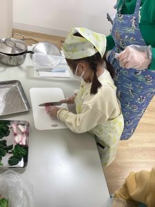 ほうれん草とかまぼこを包丁で切りましたが、しっかりと猫の手で包丁の扱いも慣れていました!