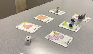 サイコロの出る数を予想して、コマをカードの上に置きます♪