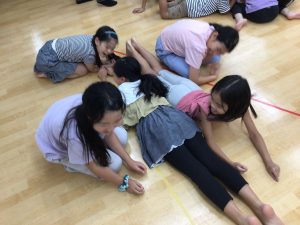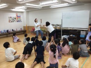 まいきー先生と一緒に大笑いしながら、みんなでいろいろなモノやカタチや役になりきりました。