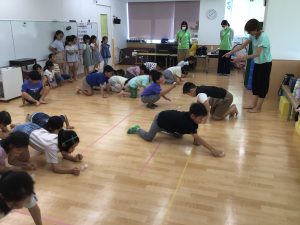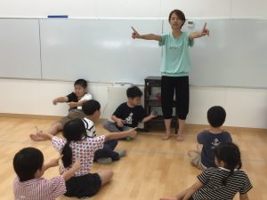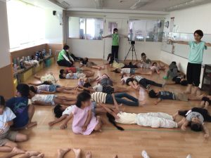 ヨガって何?から始まり、呼吸法を教えていただき、ゲームを交えて楽しくレッスンを受けました。