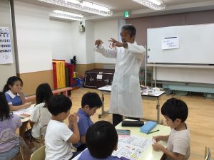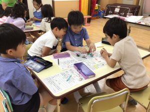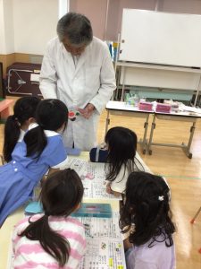 最後はコーヒーフィルターに好きな色を塗って、水をたらして色の変化を楽しみ、乾かした後にラミネートしました。