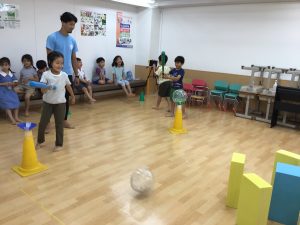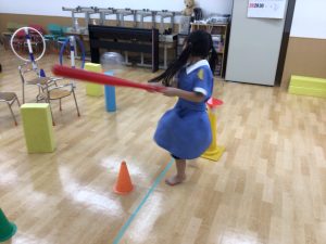ふだんバットを持つ機会のない子どもたちは、ビーチボールに当てることもなかなか難しかったようです。