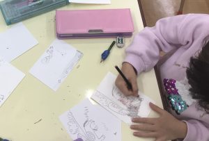 イラストレーターの「しらいしののこ」先生に馬の顔や体の特徴を教えていただきながら描いていきました。