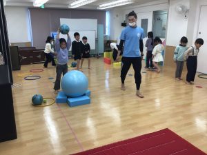 子どもたちはボールの動きや感触に大はしゃぎで、身体をたくさん動かして楽しく活動しました。