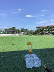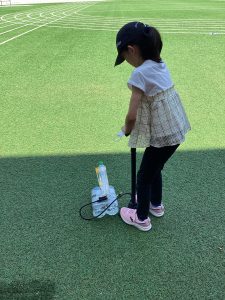 水の配分はどのくらいだったらよく飛ぶかな?力のかけ方はどのくらいだったらたくさん飛ぶのかな?