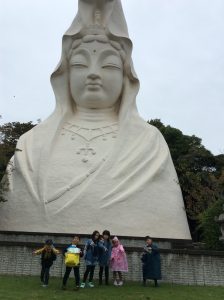 大きな観音様のお顔が見えてきてみんな大興奮。