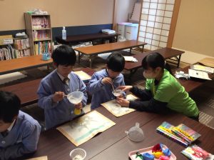 顔を描いて自分だけのお人形にしてみんな嬉しそうにお持ち帰りしました。