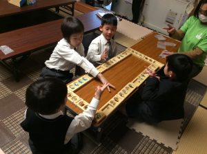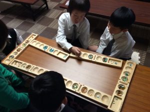 作戦を考えて早くおはじきがなくなった人が勝ちです。