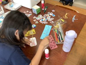 短冊に織姫や彦星の絵に色をぬり、短冊に思い思いの願い事を書いていきます。