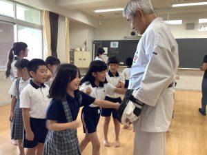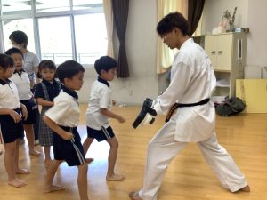 先生のお話を真剣に聞き初めて空手をやる子ども達も頑張っていました😁