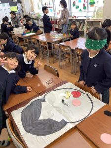 それぞれにみんな自由に遊びましたが、お正月らしく福笑いもやってみました。