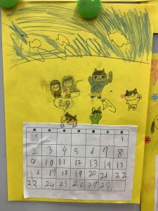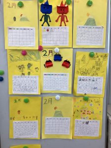 小野の子クラブで2月のカレンダー作りをしました。