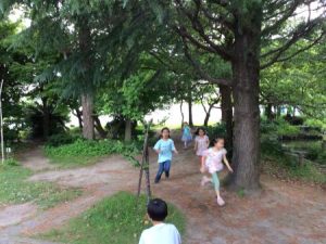 先生とのお約束を守り、整列しながら、車が通る際は一時止まって安全に通うことができています。