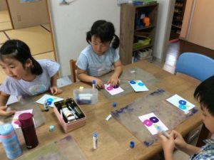 ハガキにお花紙を切って作ったアサガオを貼ったものを2枚作成したので、大切な人へのご挨拶にお使いいただければと思います。