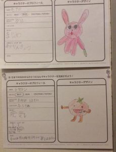 先生のお話をよく聞いて質問に答えながら、「どんな人にキャラクターを知ってもらいたいか?」「どんな性格で年齢や住んでる場所は?」など順を追ってキャラクター作りに挑戦していきました。