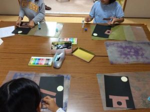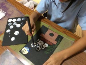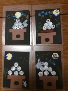 先週末に行った「スタンプでお月見団子を描いてみよう」では、おいしそうなお月見団子が並びました。