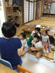 読み聞かせのお時間は「しろいうさぎとくろいうさぎ」「ぴちゃん・ばしゃん・ざぶーん」という本でしたが、楽しそうに聞き入っていました。
