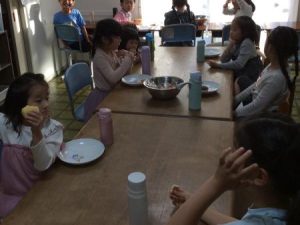 宿題も順調に終わり、明日の秋の集いについてのお話を聞きながら、おやつをいただました。
