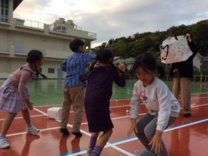 本日の種目は、2チームに分かれ「かき玉いれ」です。ヒートアップして3回戦まで行い、楽しみました。