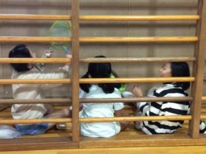 体育館では、ドロケイをして元気いっぱい走り回りまったり、肋木の後ろで女子トークをしたり、とても楽しそうでした。