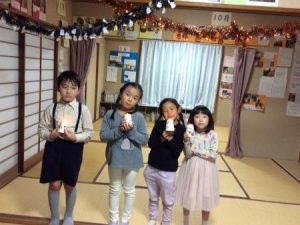 おばけちゃんランタンを作りました。皆とても喜んで、個性的なランタンができました。
