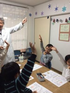 実験教室が終わった後、先生が遊びの相手をしてくれました。