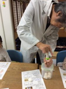 本日の実験教室では「息をするときの肺はどうなっているの?」と、呼吸の仕組みを学びました。