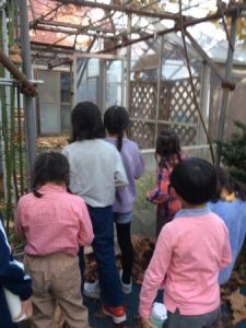 外遊びに行く際、森にあるビニールハウスにスズメが閉じ込められていることを発見した子供たちは、先生にお願いをし、ビニールハウスの扉を開けていただきました。