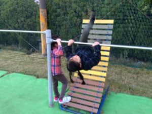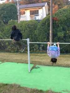 暗くなるのが早くなってきましたが、校庭では鉄棒やうんていを、森では鬼ごっこやジャングルジムで元気いっぱい遊びました。