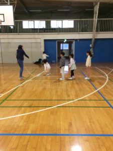 ドロケイ、大縄跳び、バドミントンとそれぞれ元気よく遊びました。