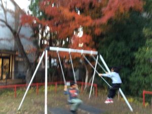 外遊びは紅葉がきれいな森でブランコや探検をしたり、校庭で逆上がりの練習やドロケイをしました。自由遊びもみんな楽しそうに仲良く遊んでいました。