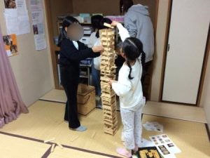 お部屋では、皆で仲良く一冊の本を読んだり、トランプやブロックで遊びました。