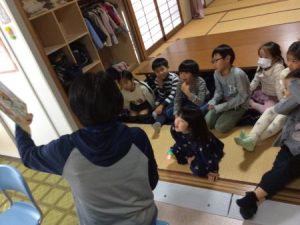 おやつのあとは、クリスマスを題材にした本の読み聞かせをしました。