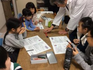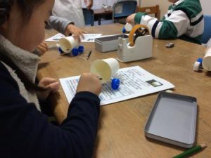 理科実験教室では、興味深い磁石の力について学び、最後に磁石の力で動く車を一人一台ずつ工作をしました。