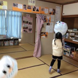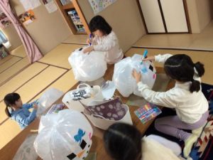 皆さん可愛くお顔を描き、ボンボンと投げてはキャッチして遊びました。