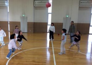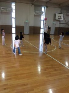 体育館では、皆でバレーボール、大縄跳びをして、元気に遊びました。
