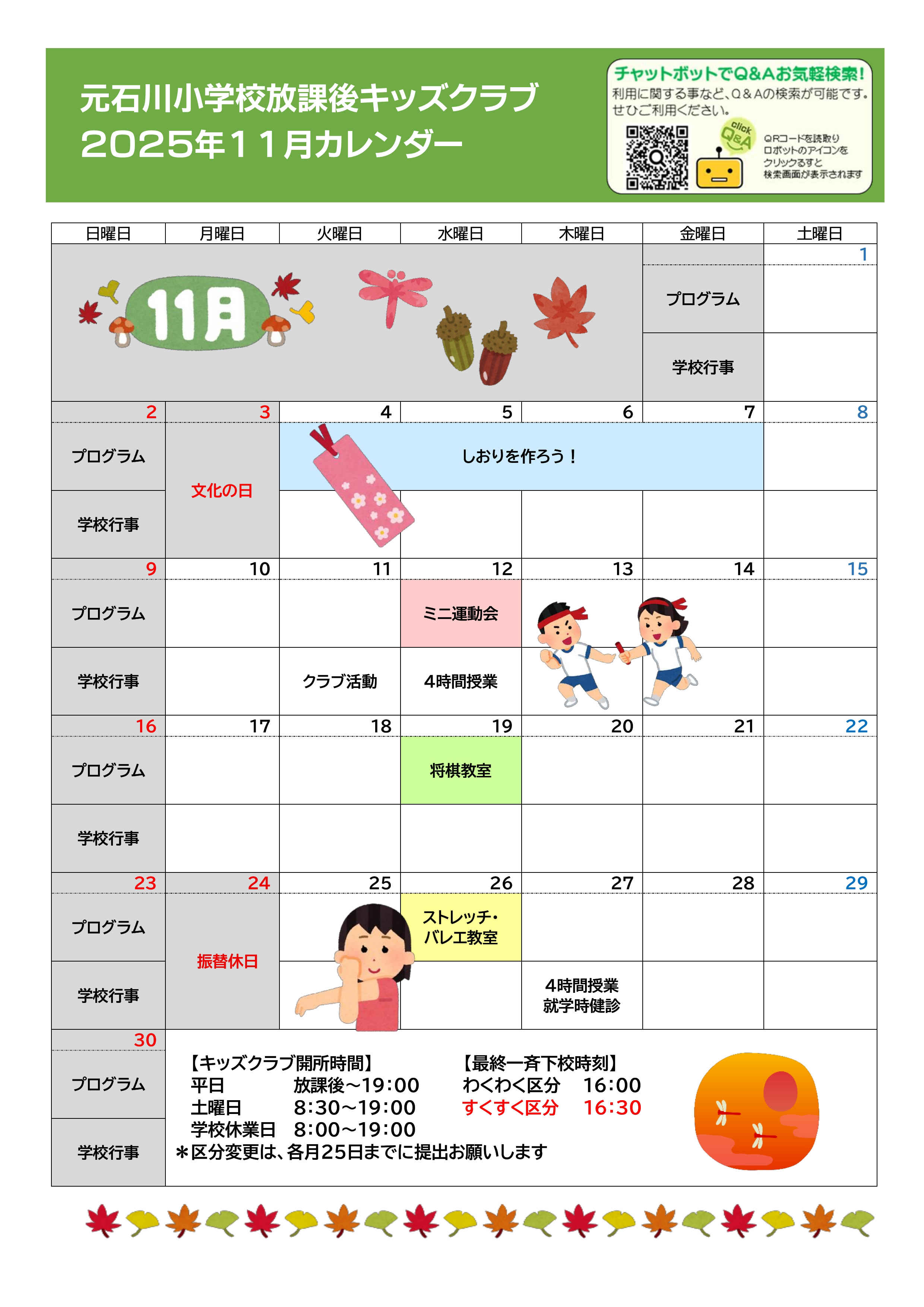 警報発表時等で通常と開所時間が異なる場合は、スタッフが放課後キッズクラブに到着してから利用可能になります。受け入れ可能になり次第、メールにてお知らせします。
