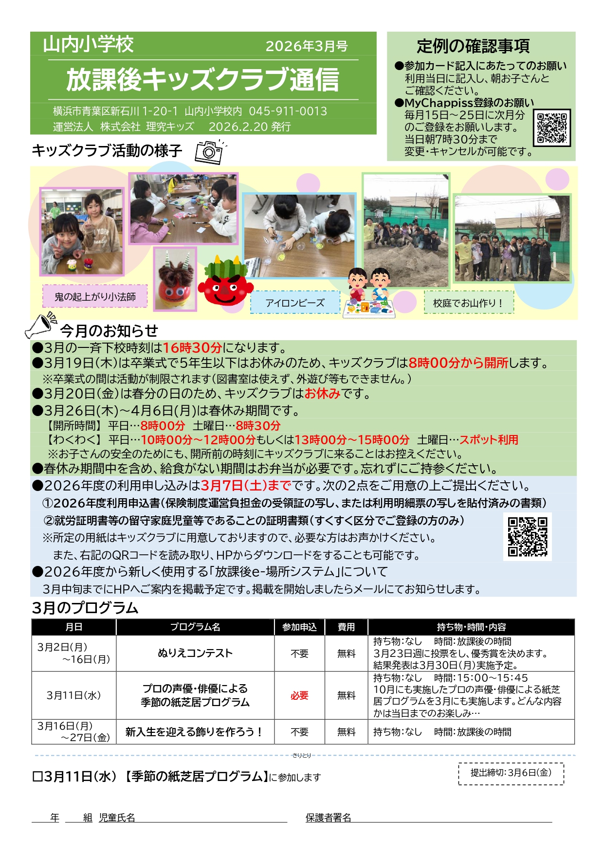 - キッズクラブ運営方針(PDFダウンロード) ※2026年度「運営方針」更新