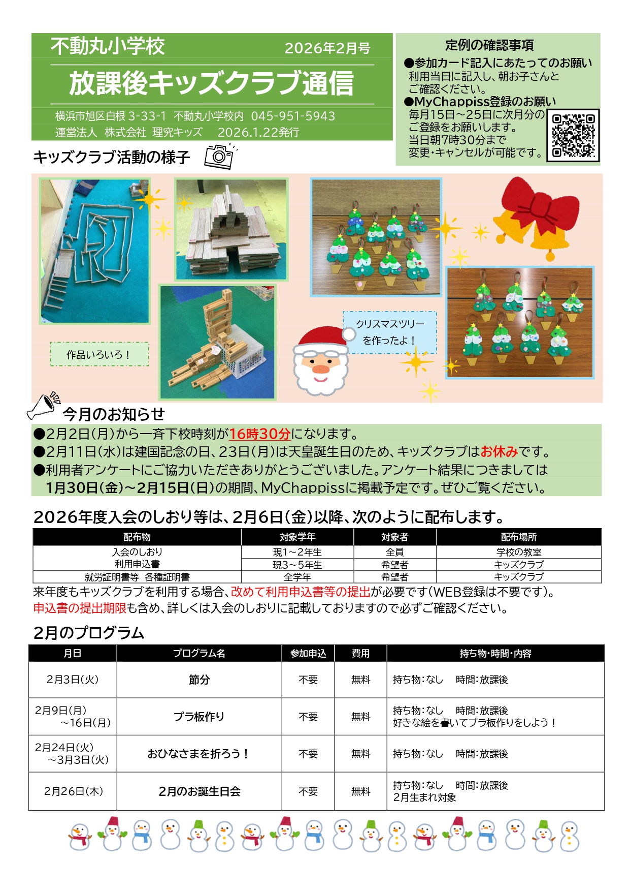 警報発表時等で通常と開所時間が異なる場合は、スタッフが放課後キッズクラブに到着してから利用可能になります。受け入れ可能になり次第、メールにてお知らせします。