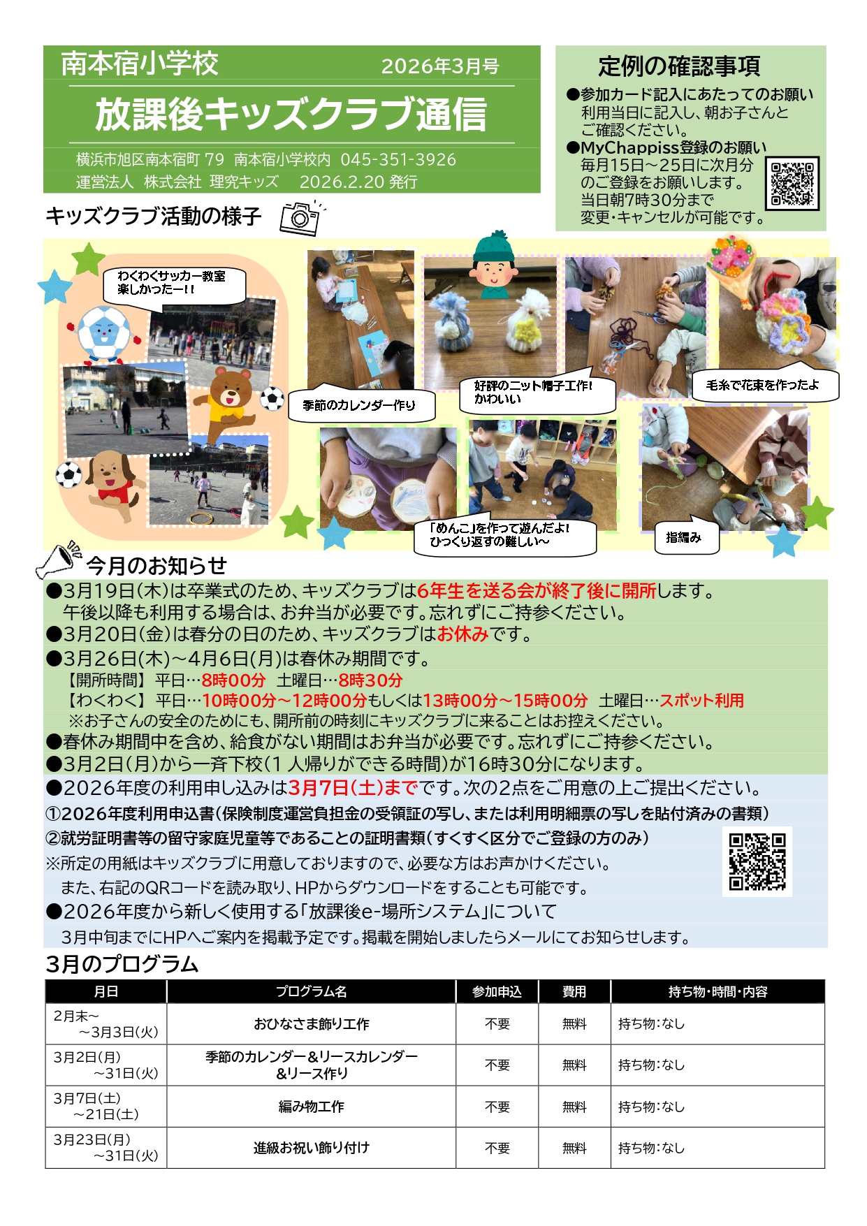 - キッズクラブ運営方針(PDFダウンロード) ※2026年度「運営方針」更新