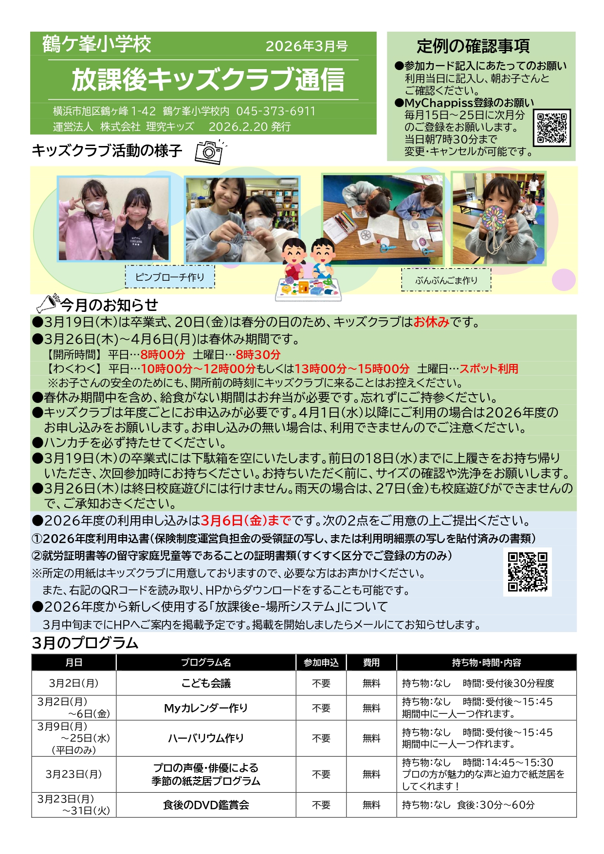 - キッズクラブ運営方針(PDFダウンロード) ※2026年度「運営方針」更新