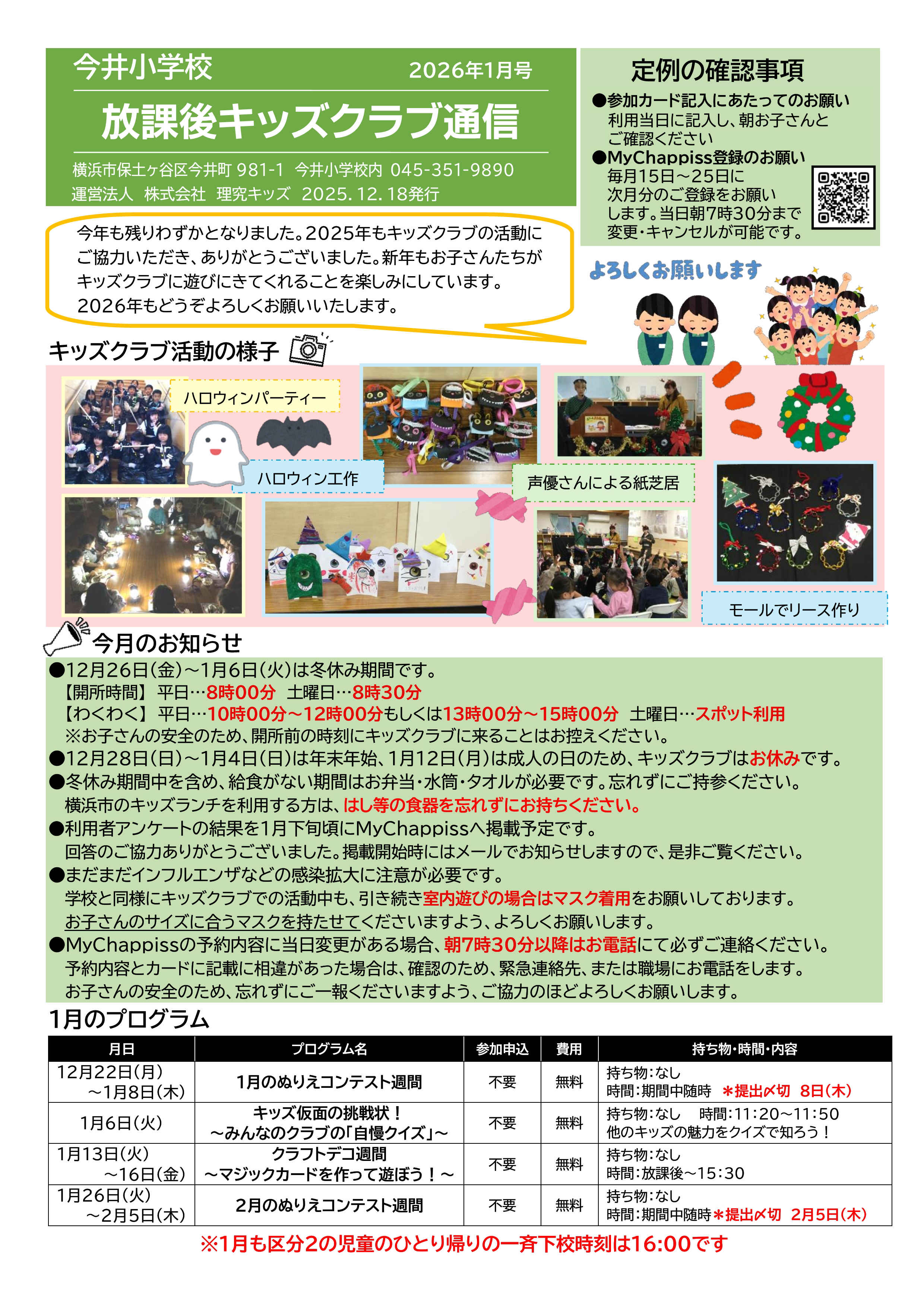 警報発表時等で通常と開所時間が異なる場合は、スタッフが放課後キッズクラブに到着してから利用可能になります。